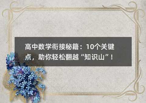 亲爱的同学们,高中数学是初中知识的“升级版”。它像你熟悉的自行车,只是换成了更高级的山地车——你早会骑,只是没换轮胎。衔接是“升级”:用初中基础,搭高中桥梁;用机械思维,炼理性思维。从今天起,多问“为什么”,主动画图,独立解题。